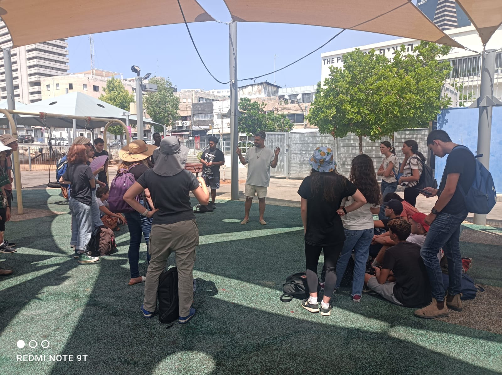 סיור בשכונת נווה שאנן בתל אביב בהדרכת עמותת “בינ”ה”, מפגש עם מבקש מקלט מאריתריאה, עם פעיל בעמותת “מגרש ביתי” המסייעת לדרי רחוב ועם קפטן נבחרת ישראל במונדיאל דרי הרחוב שמשתתף בחוג כדורגל של העמותה.
